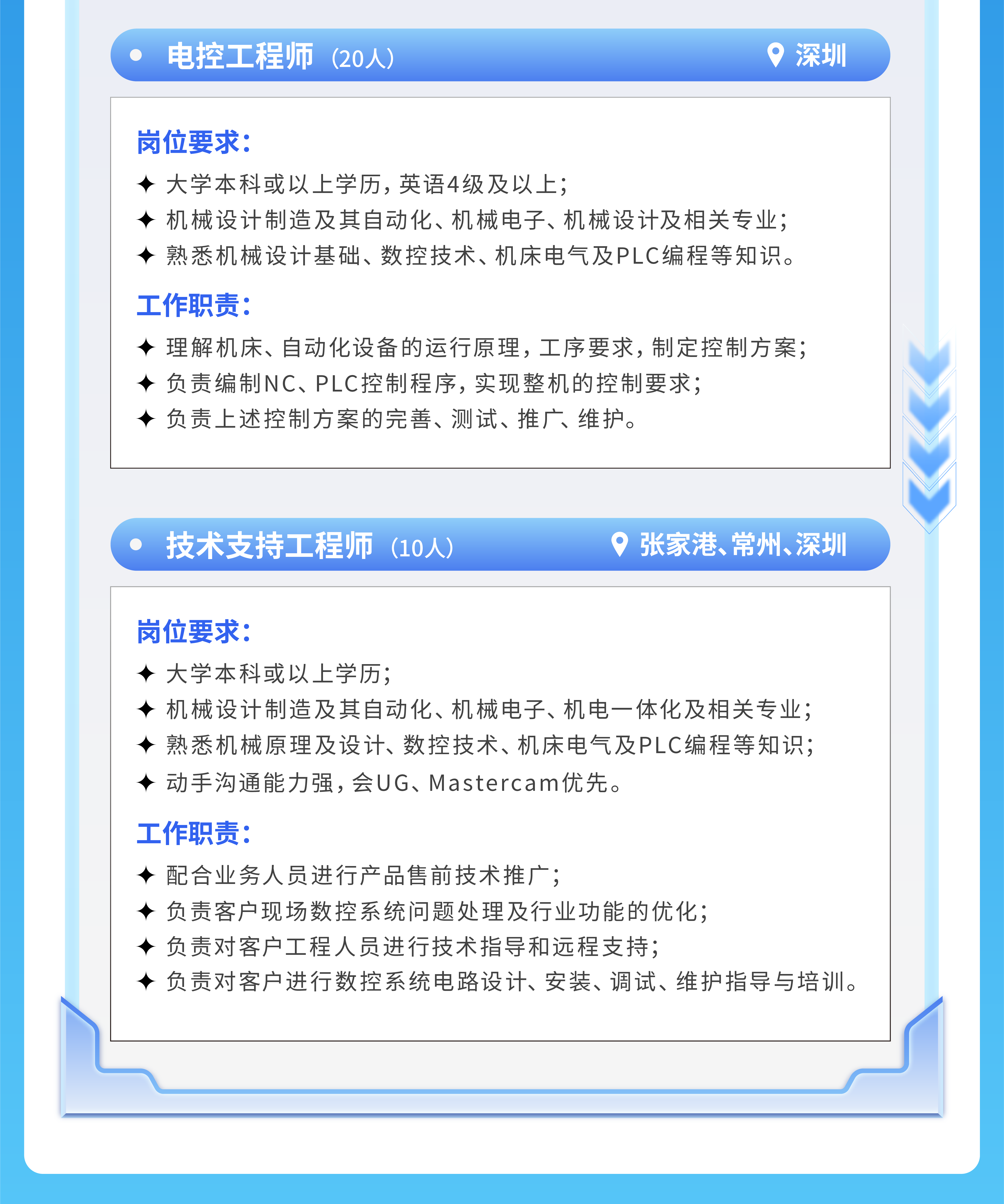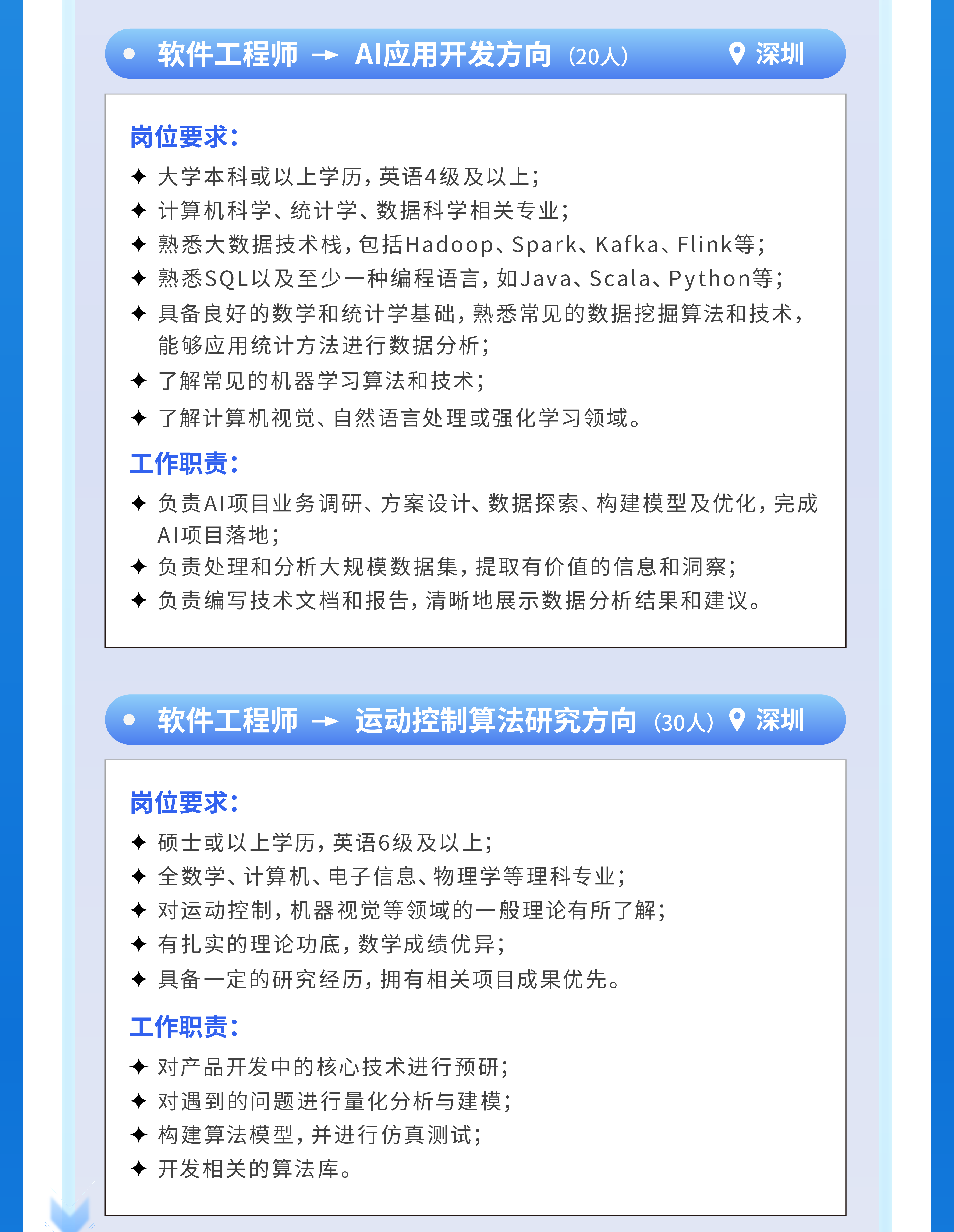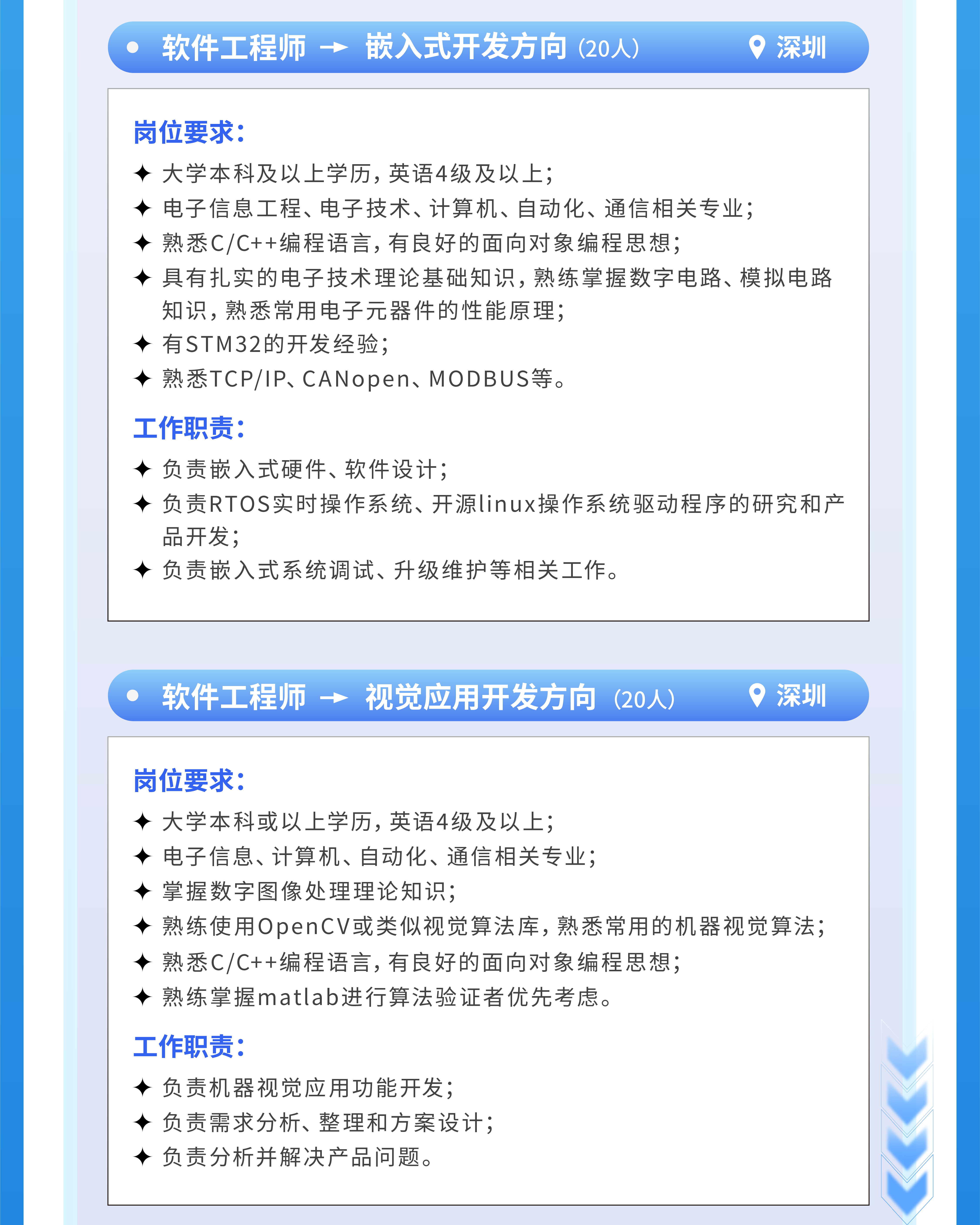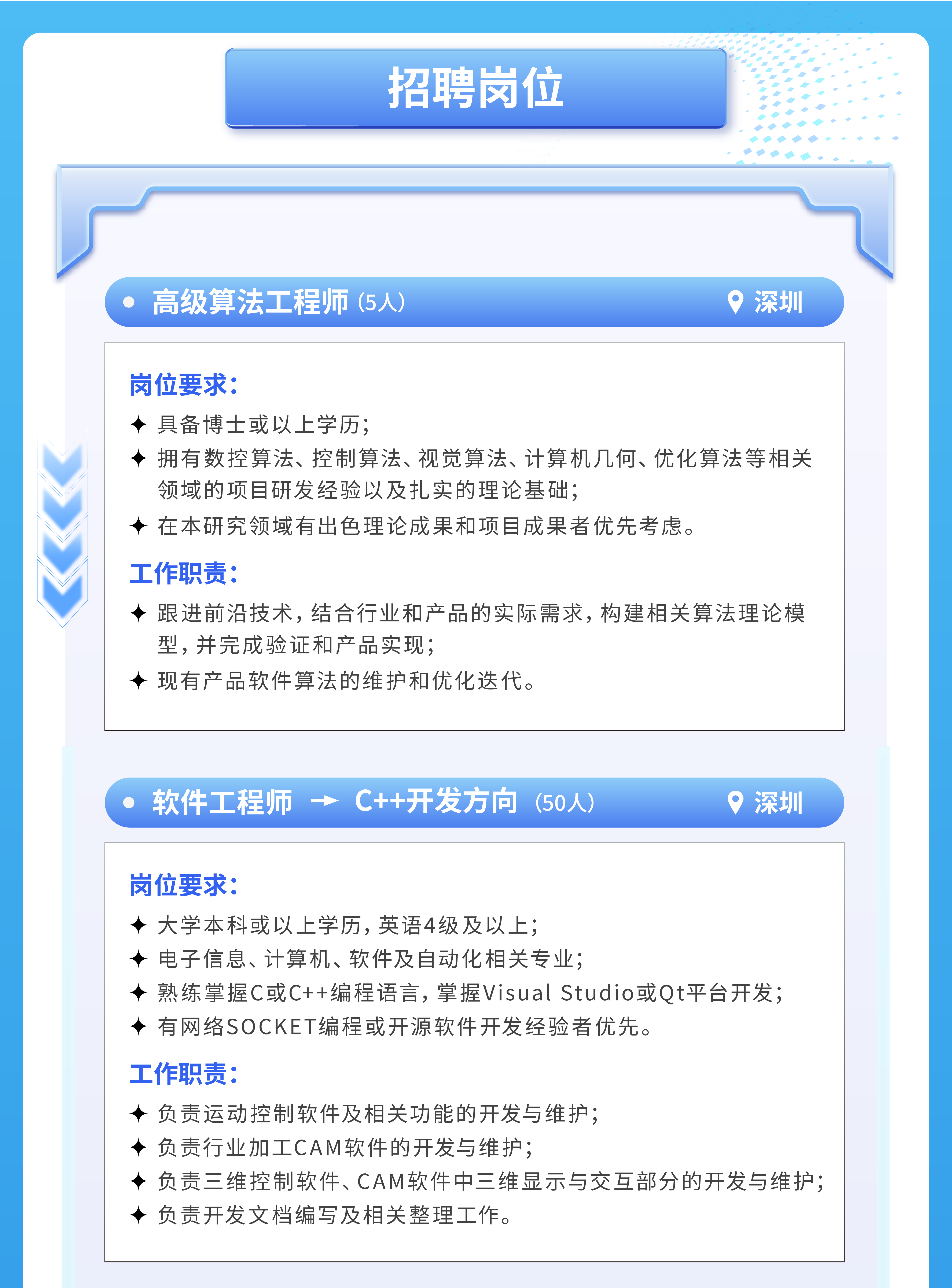 关键字:追光族梦 智控未来丨2025年大族智控春季校园招聘火热开启!高级算法工程师,软件工程师(C++开发方向、嵌入式开发方向、视觉应用开发方向、AI应用开发方向、运动控制算法研究方向、应用工程师、工艺开发工程师),电控工程师,技术支持工程师。